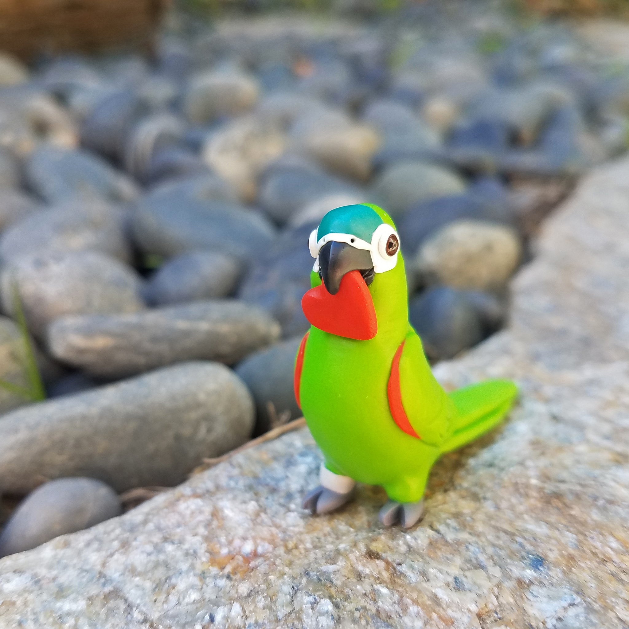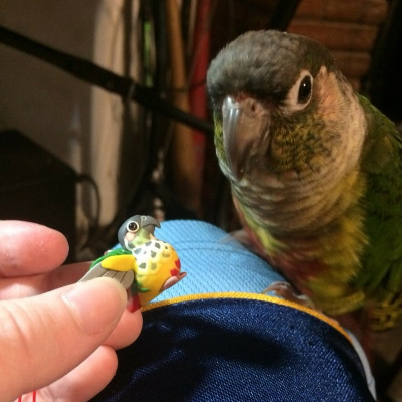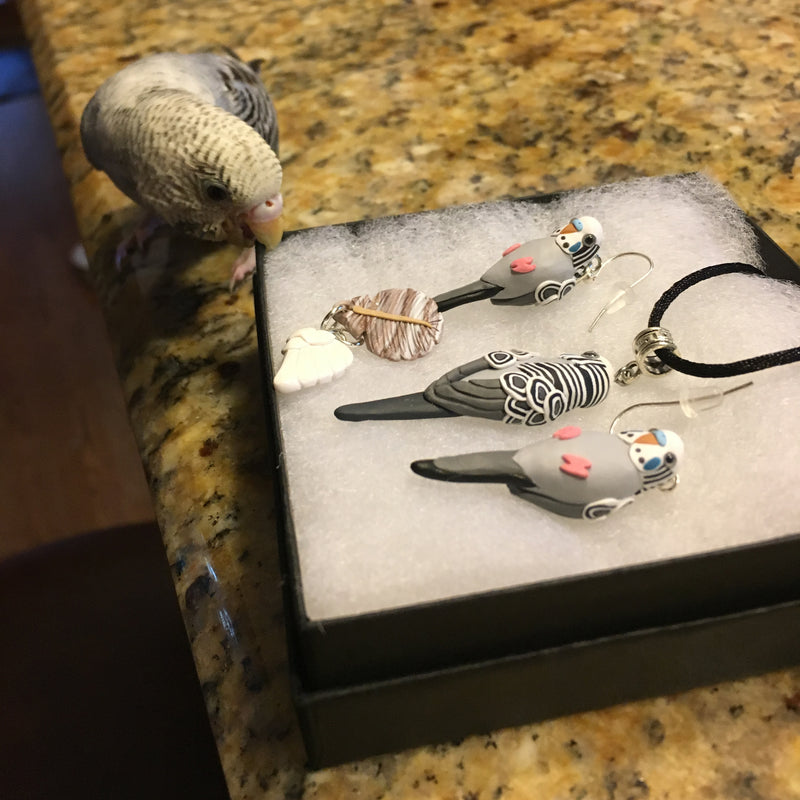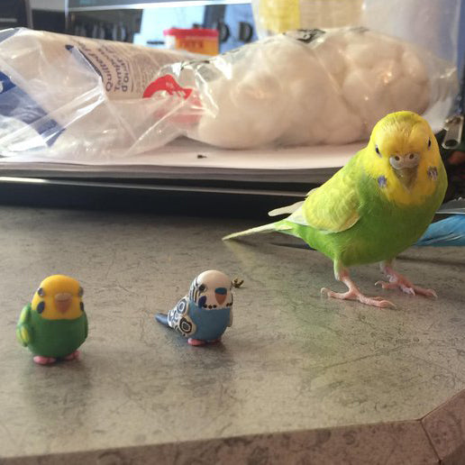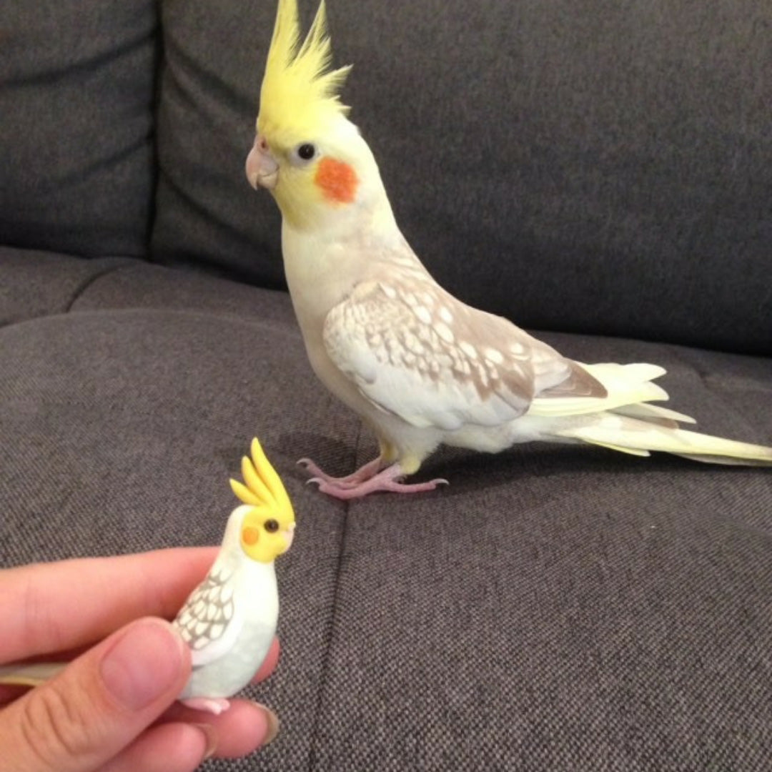 Celebrate the bond with a beloved pet, or miniaturize your favorite bird in nature. Each miniature is handmade from polymer clay, wire, and resin. They are weather resistant and reasonably durable, though I recommend you treat them with care.