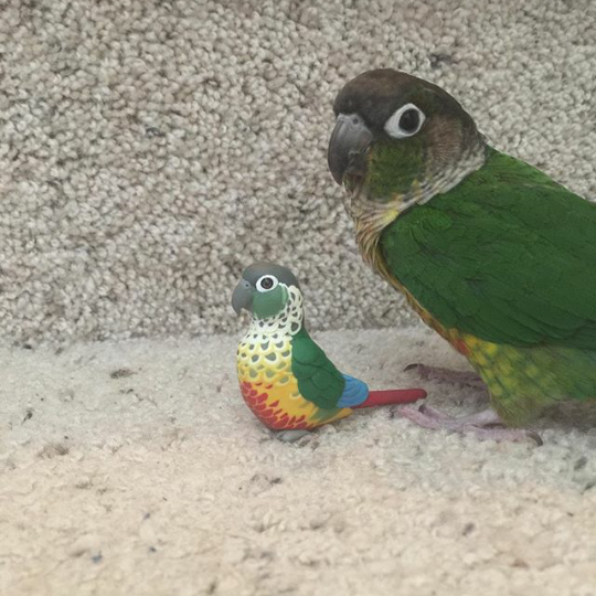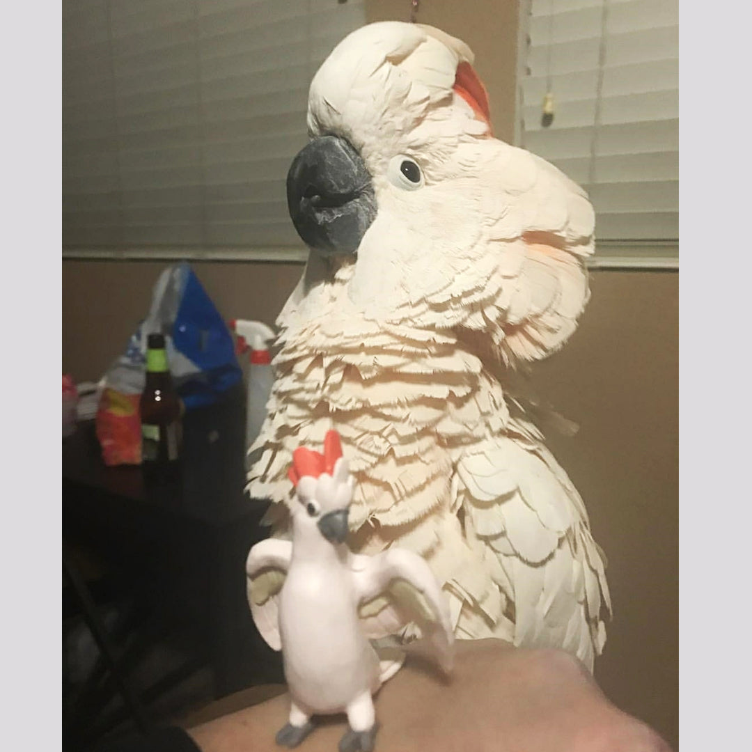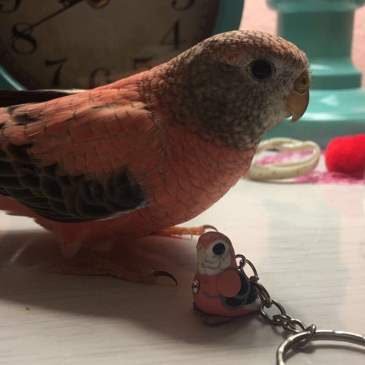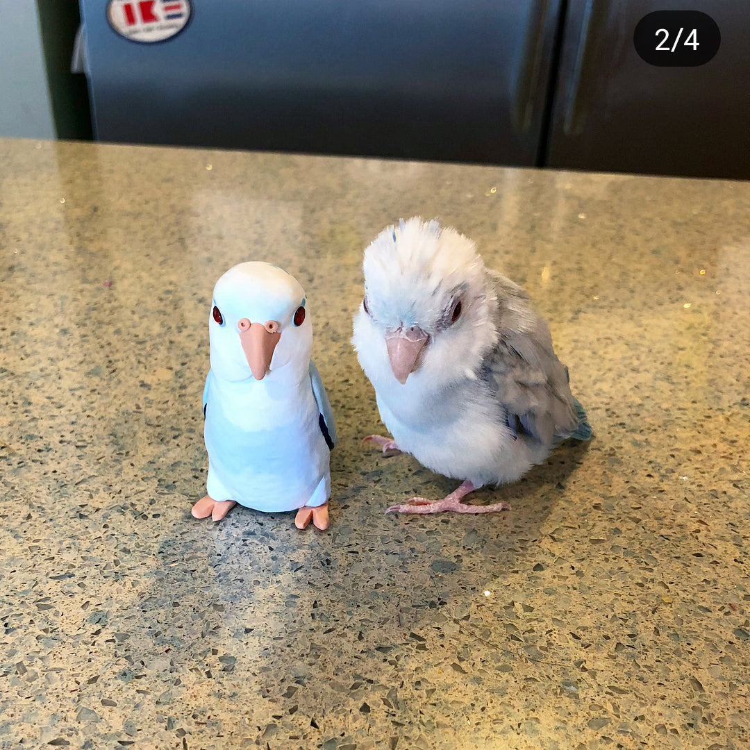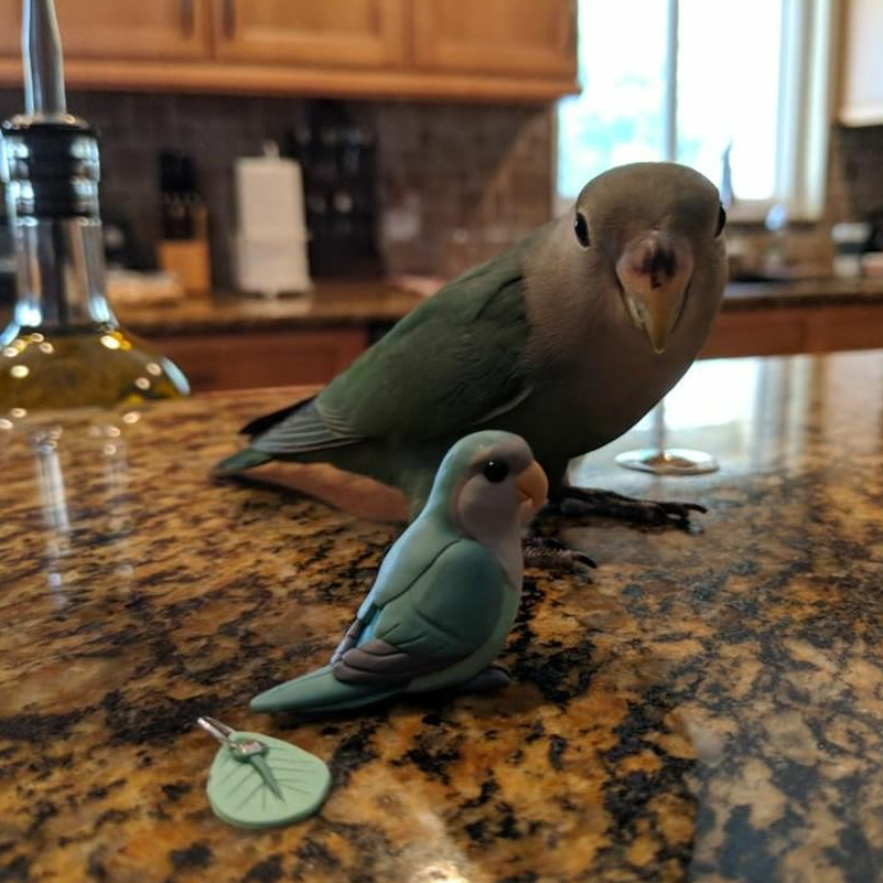 Celebrate the bond with a beloved pet, or miniaturize your favorite bird in nature. Each miniature is handmade from polymer clay, wire, and resin. They are weather resistant and reasonably durable, though I recommend you treat them with care.