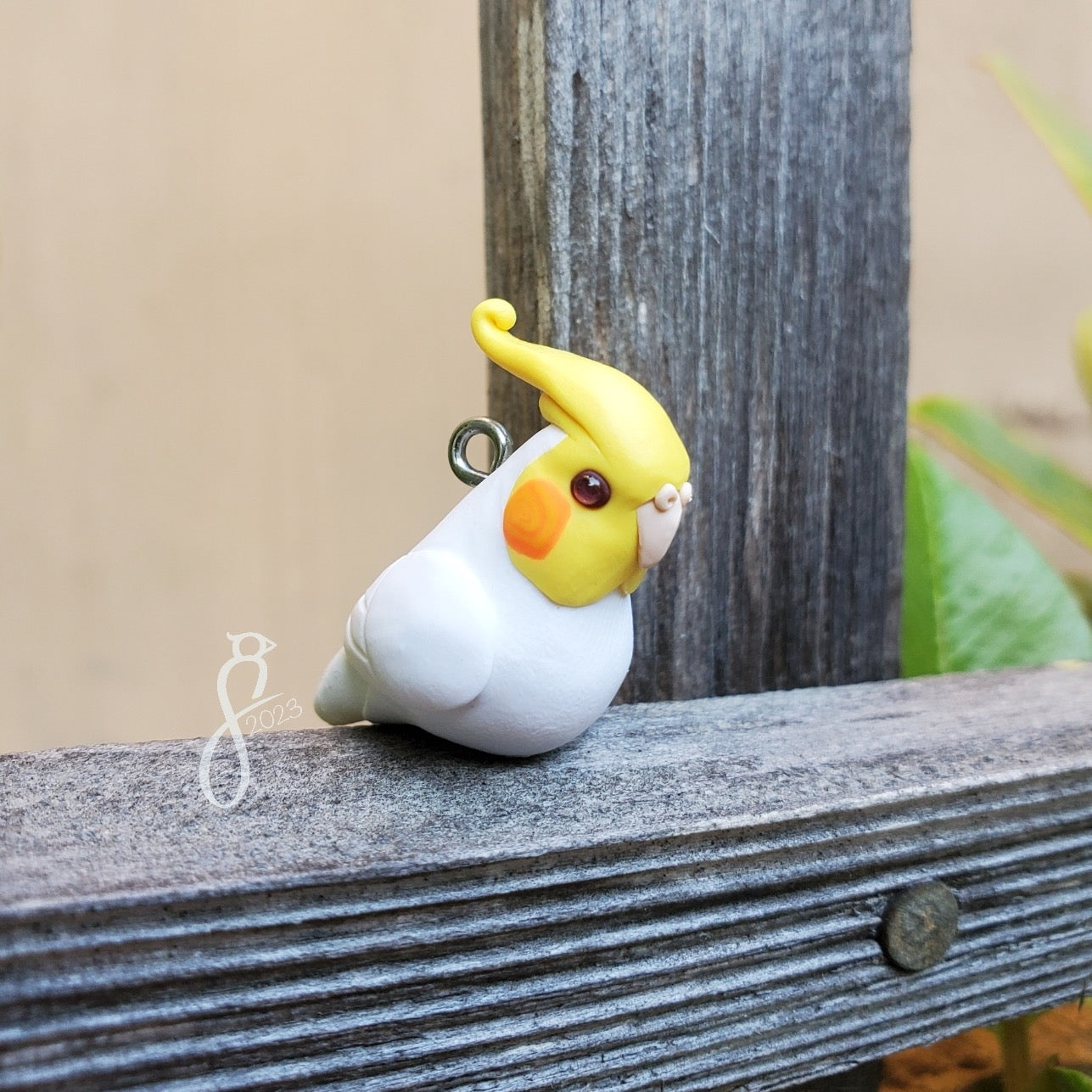 This cockatiel charm is ready for his next adventure. Take him with you as a pendant, or display him as a desk guardian.