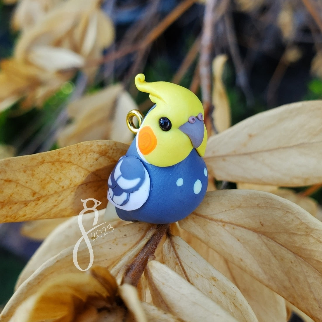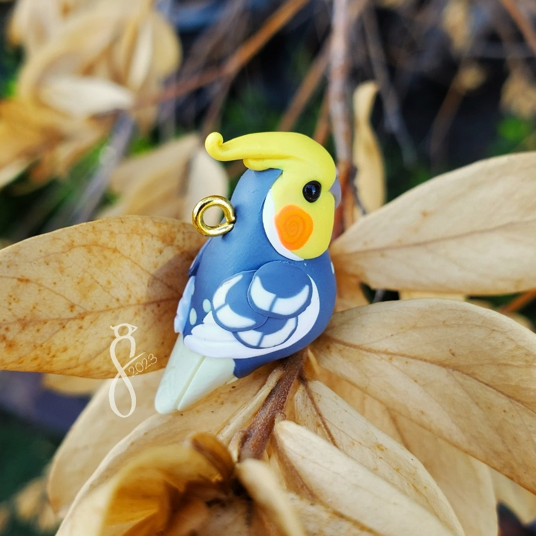 This cockatiel charm is ready for her next adventure. Take her with you as a pendant, or display her as a desk guardian.