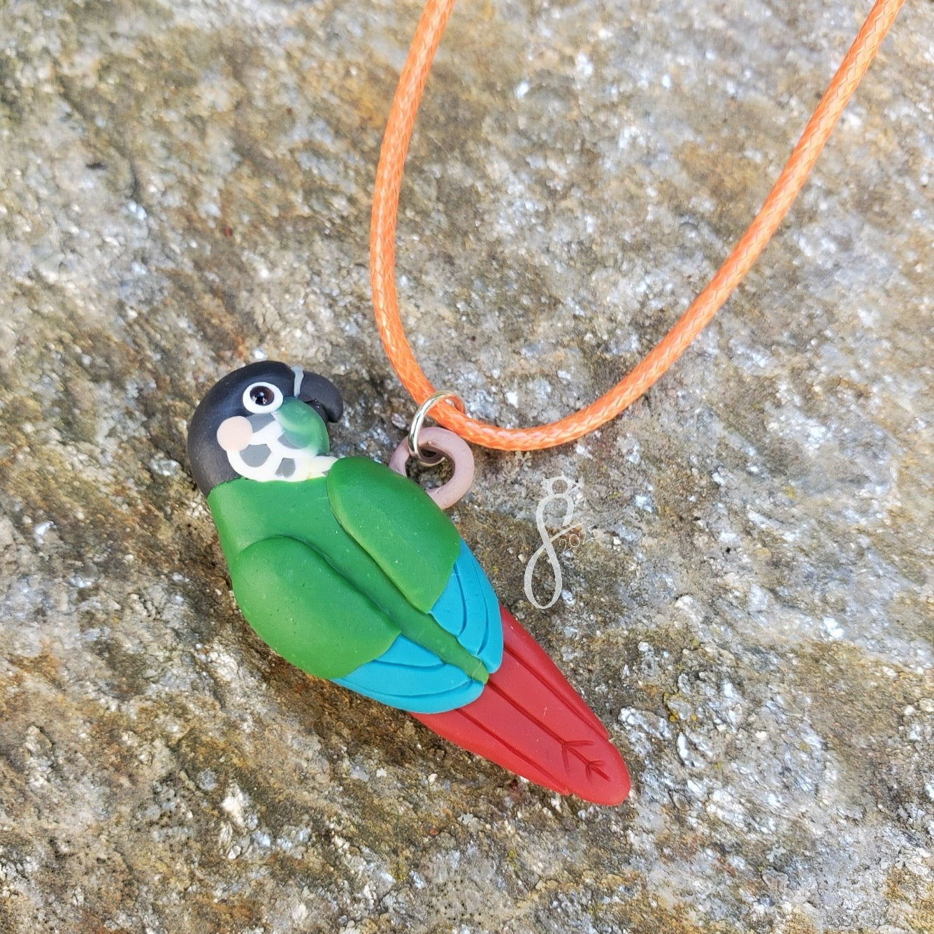 Each pendant is handmade from polymer clay and wire, and comes with an 18 inch woven orange cord.