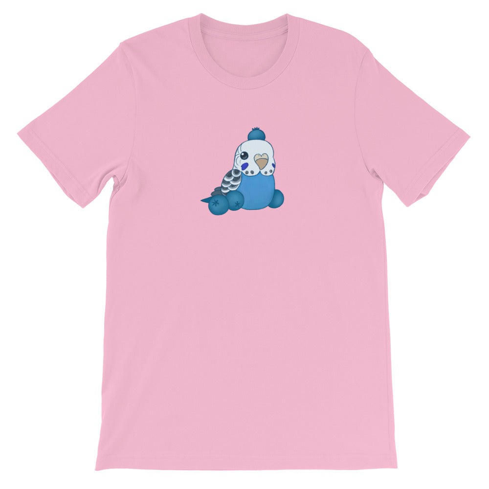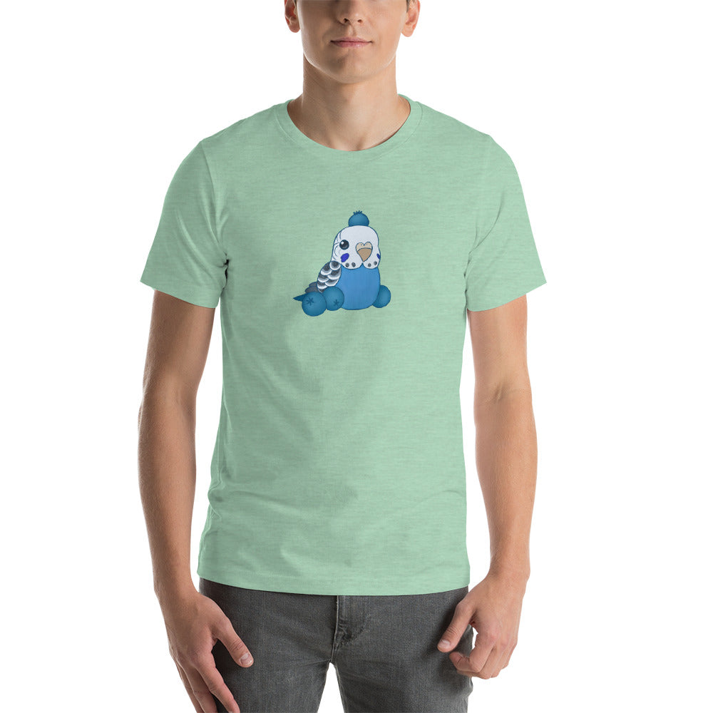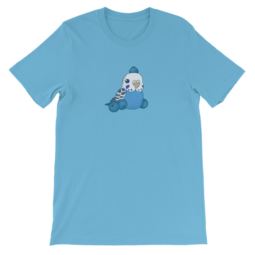 Showcase some budgie love with a casual shirt featuring a cute fluffy budgie playing in some blueberries!