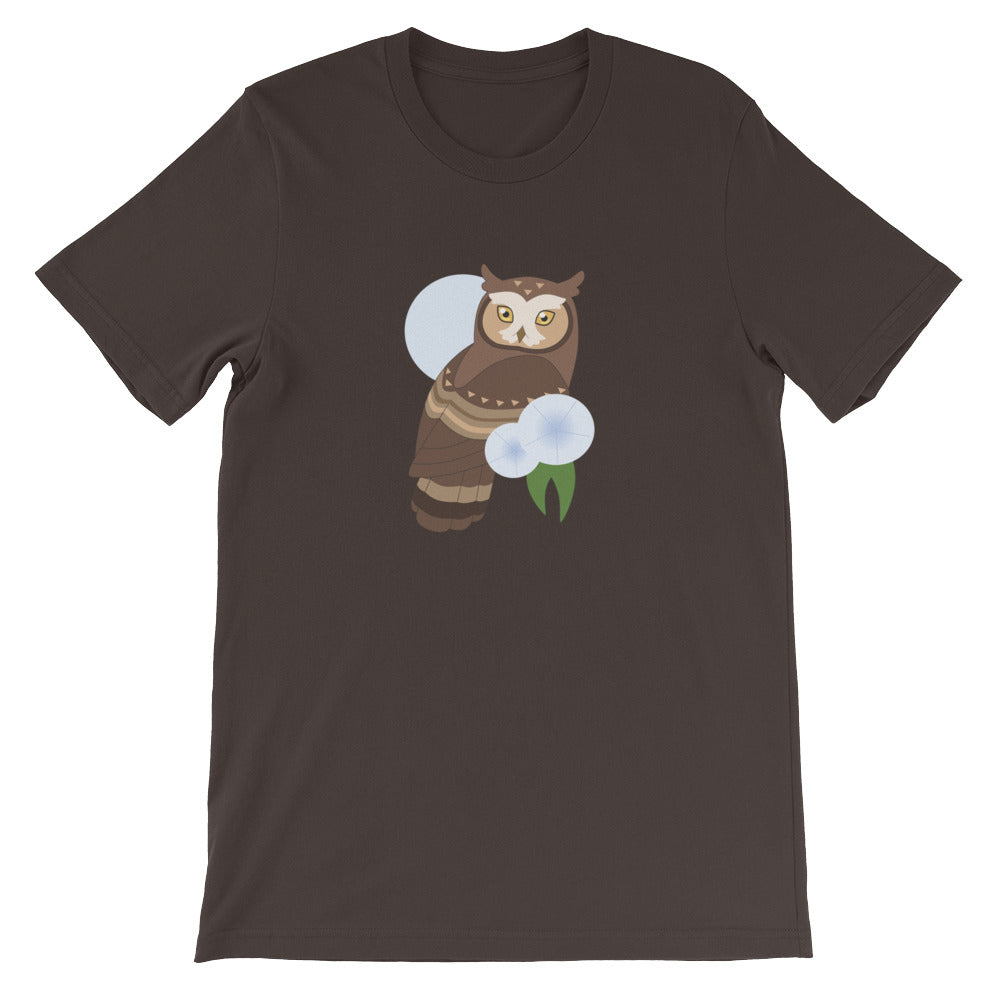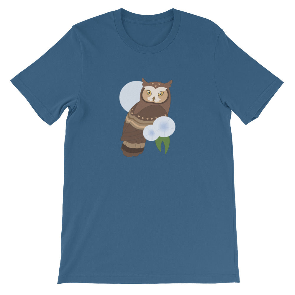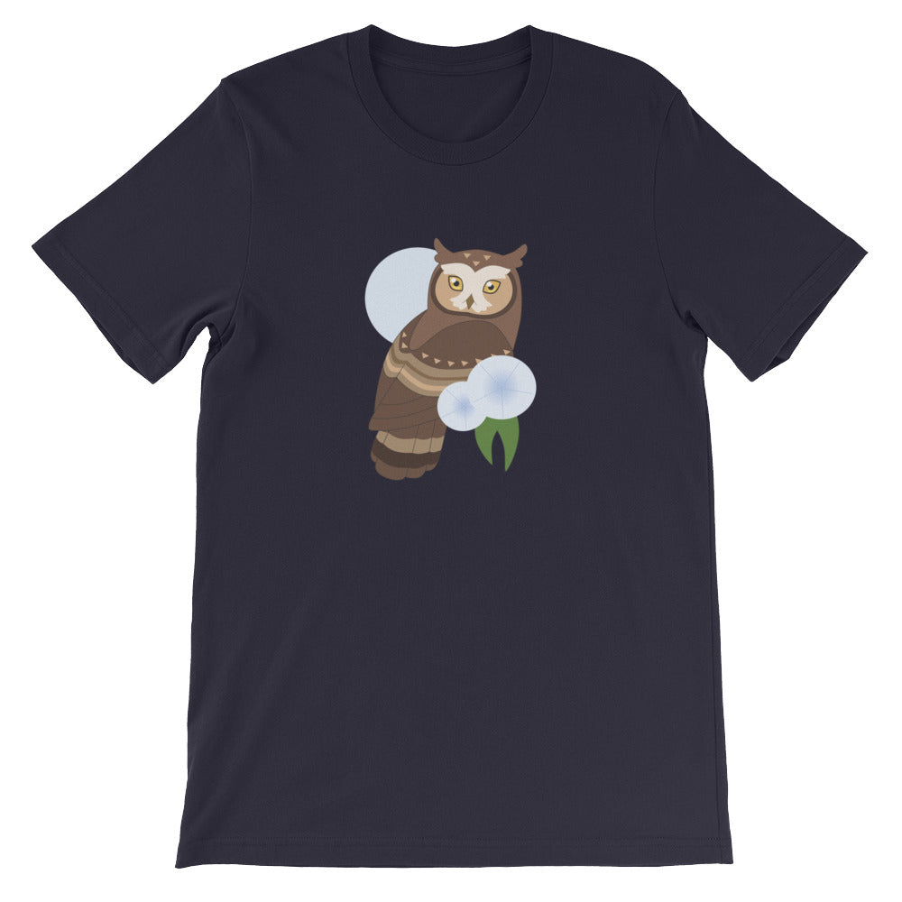 Are you an early bird or a night owl? Showcase your lifestyle with this t-shirt featuring a cute horned owl perched in front of a pale blue moon.