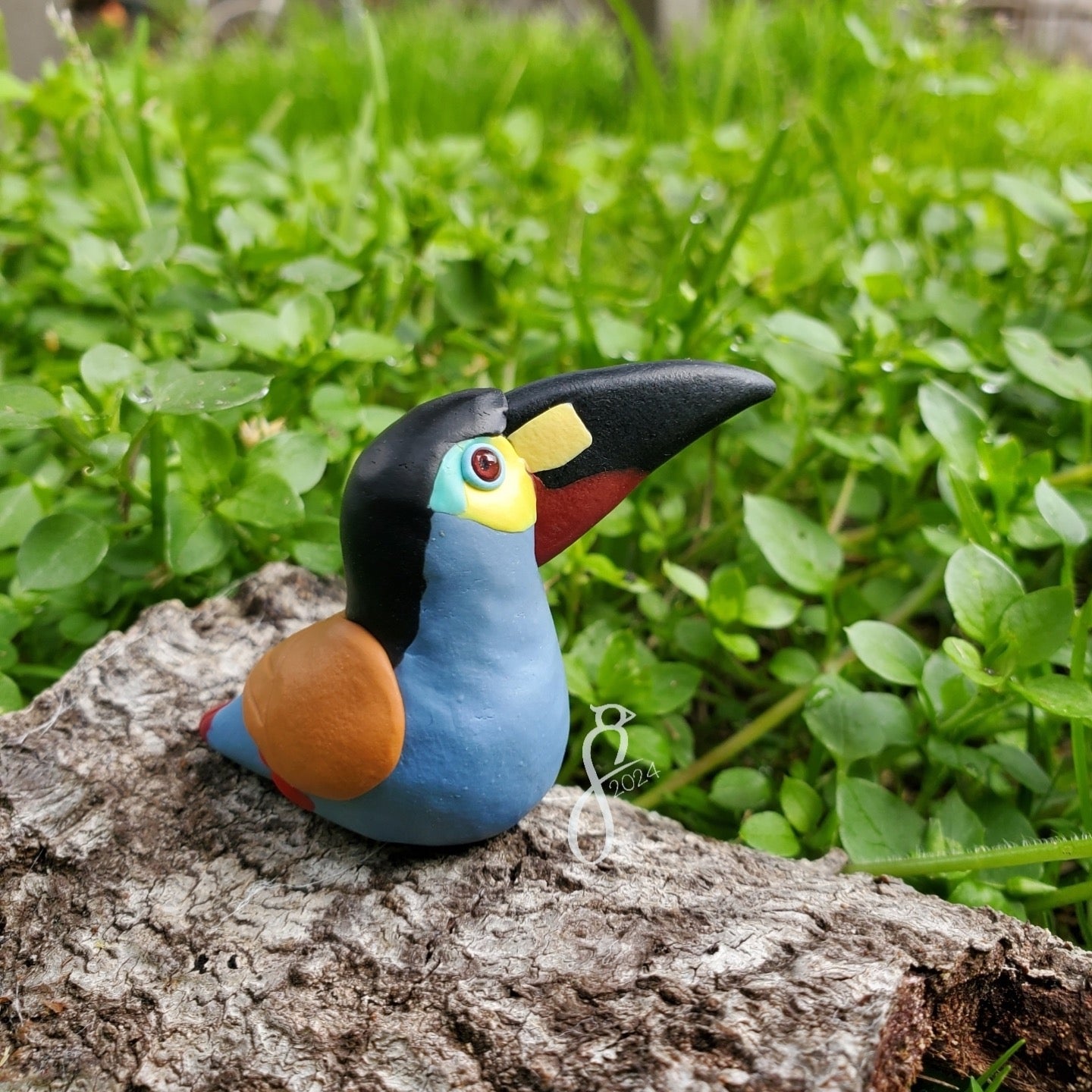 This mini toucan is excited for a new home. He makes a great ring guardian (ring not included), or a buddy for a potted plant.