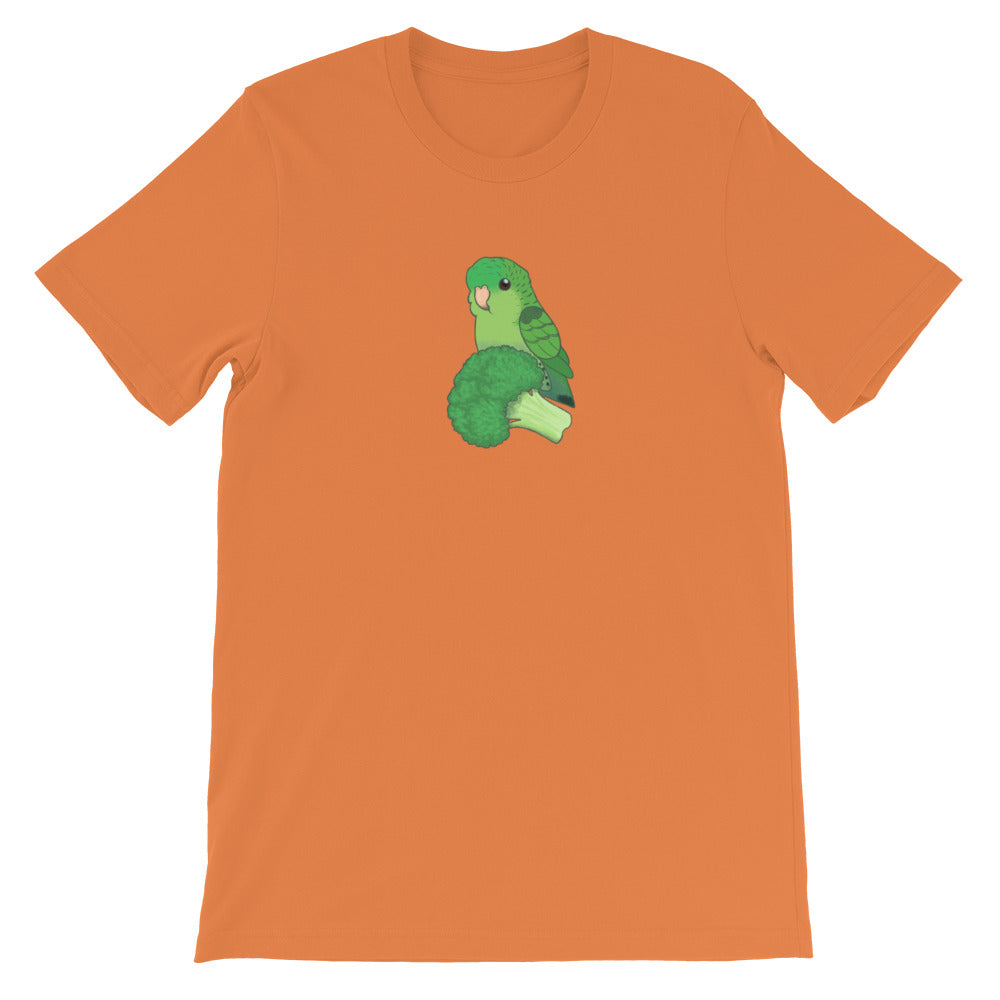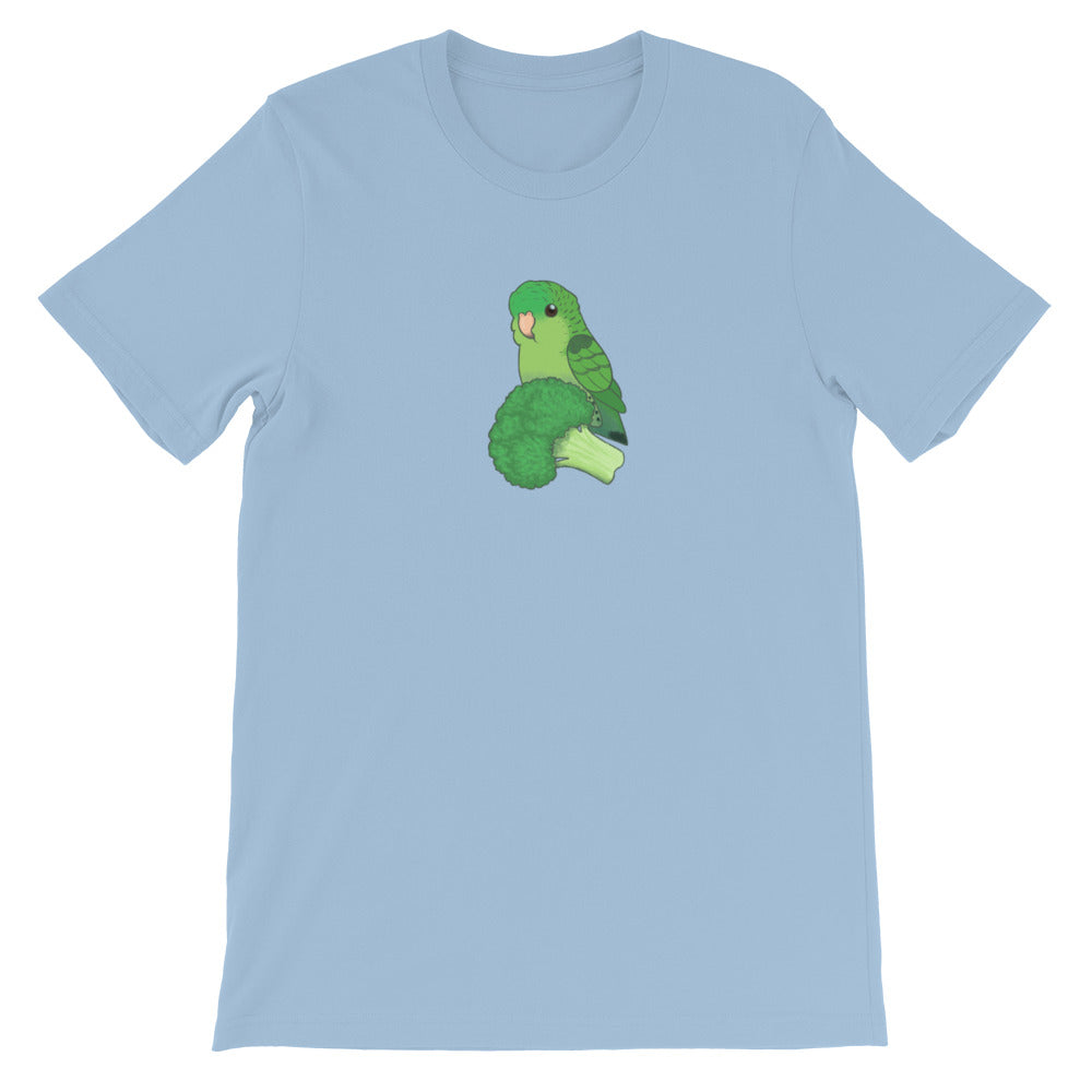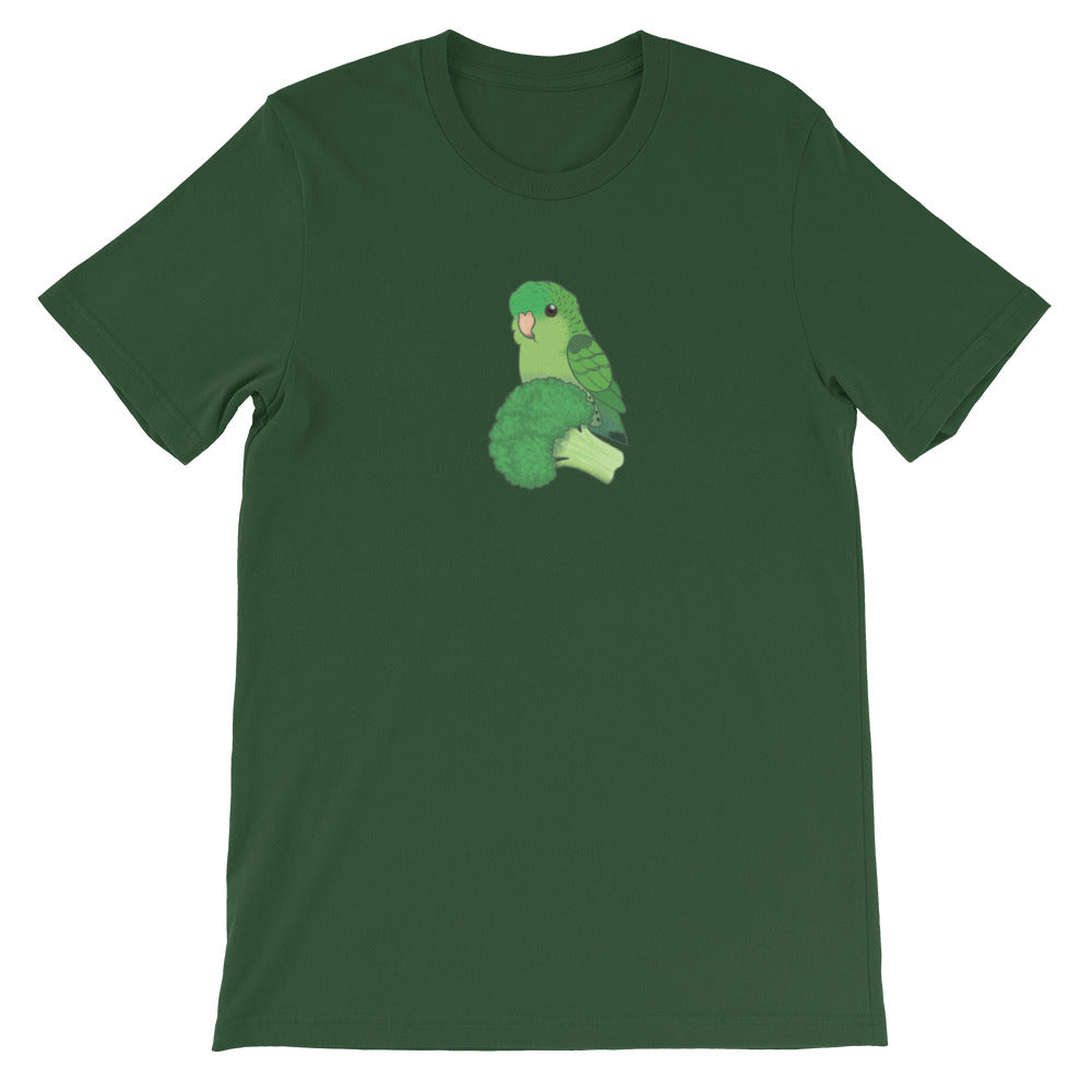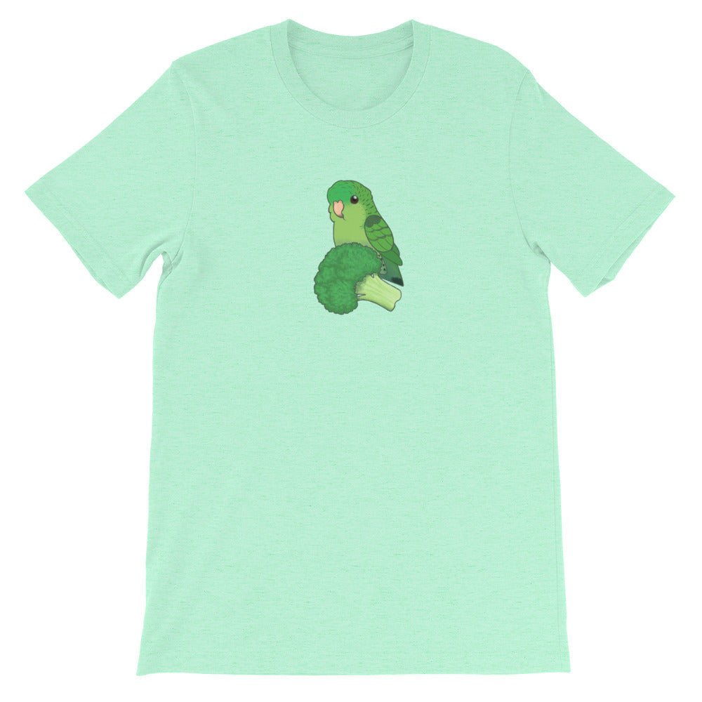 Showcase some linnie love with a casual shirt featuring a green lineolated parakeet on a broccoli floret!